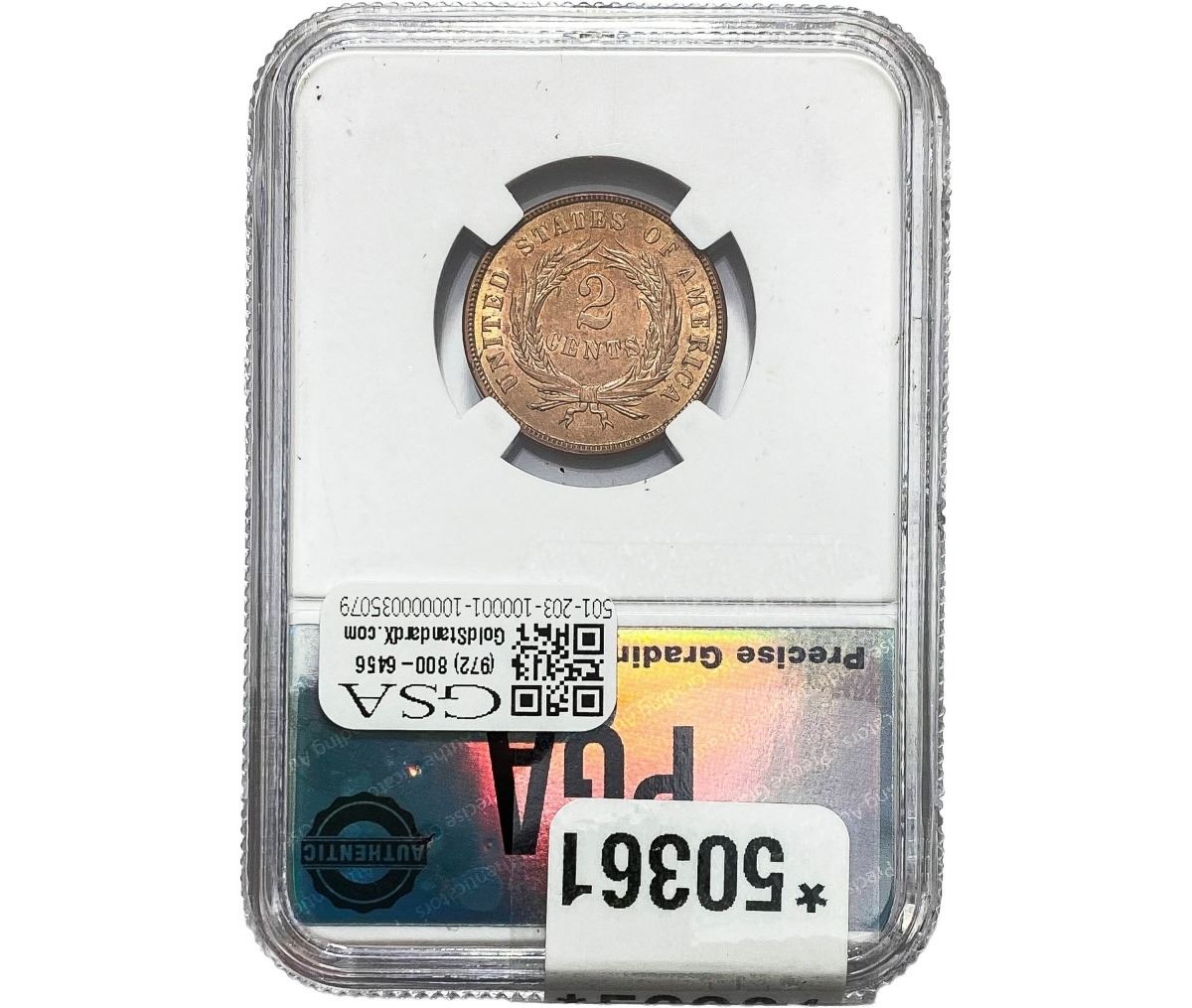 e. Coins sold referencing a third-party grading service are sold “AS IS” without any express or implied warranty, except for a guarantee by GSA that they are genuine. Removal or alteration of the holder, voids all of Bidder’s claims concerning that Product. Certain warranties may be available from the grading services and Bidders are referred to them for further details: Numismatic Guaranty Corporation (NGC), PO Box 4776, Sarasota, FL 34230, www.ngccoin.com/services/writtenguarantee.asp; Professional Coin Grading Services (PCGS), PO Box 9458, Newport Beach, CA 92658, www.pcgs.com/guarantee.html; ANACS, 6555 S. Kenton St., Ste. 303, Englewood, CO 80111; and Independent Coin Grading Co. (ICG), 7901 East Bellview, Ave., Suite 50, Englewood, CO 80111.