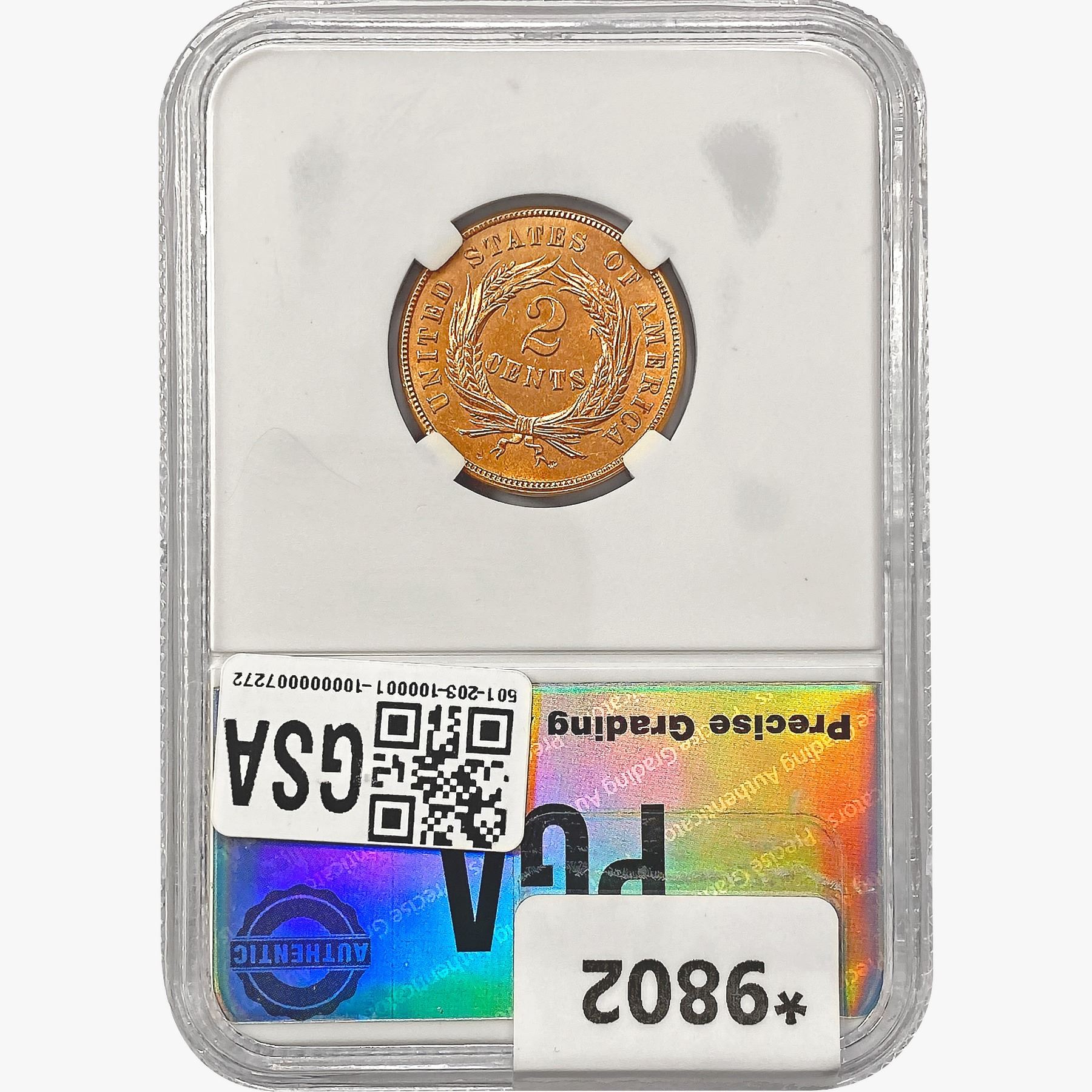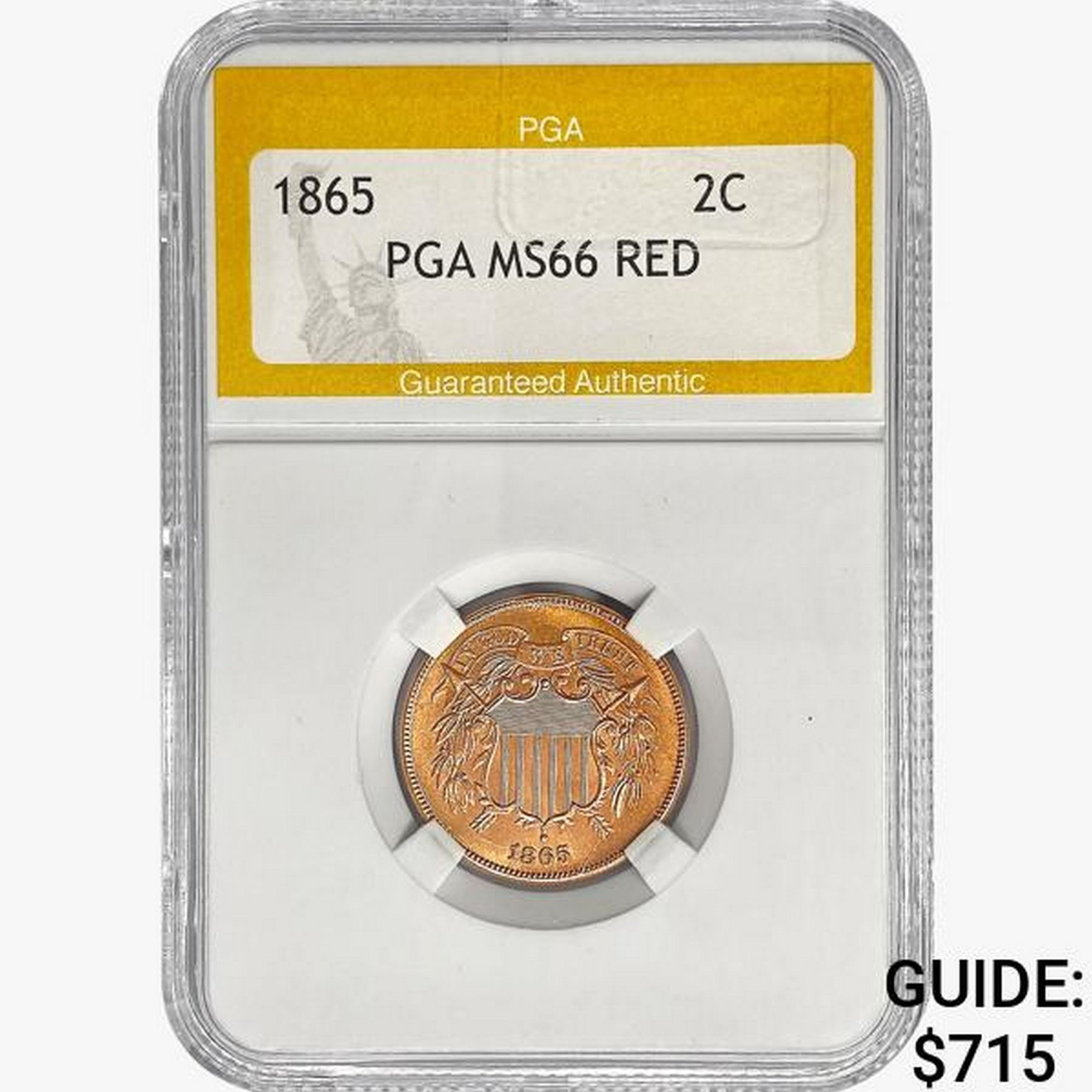1865 Two Cent Piece PGA MS66 RED