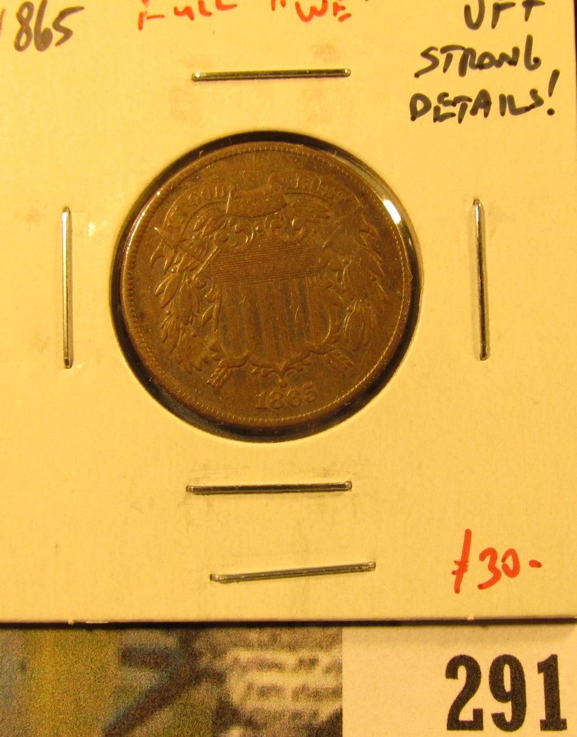 1865 Two Cent Piece, VF+, strong details, full WE, value $30