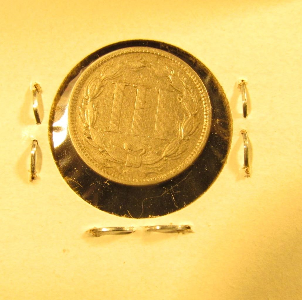 1865 U.S. Civil War Three Cent Nickel, Fine.