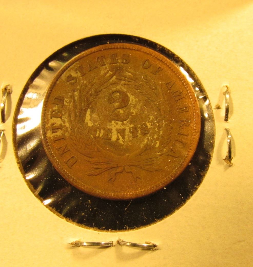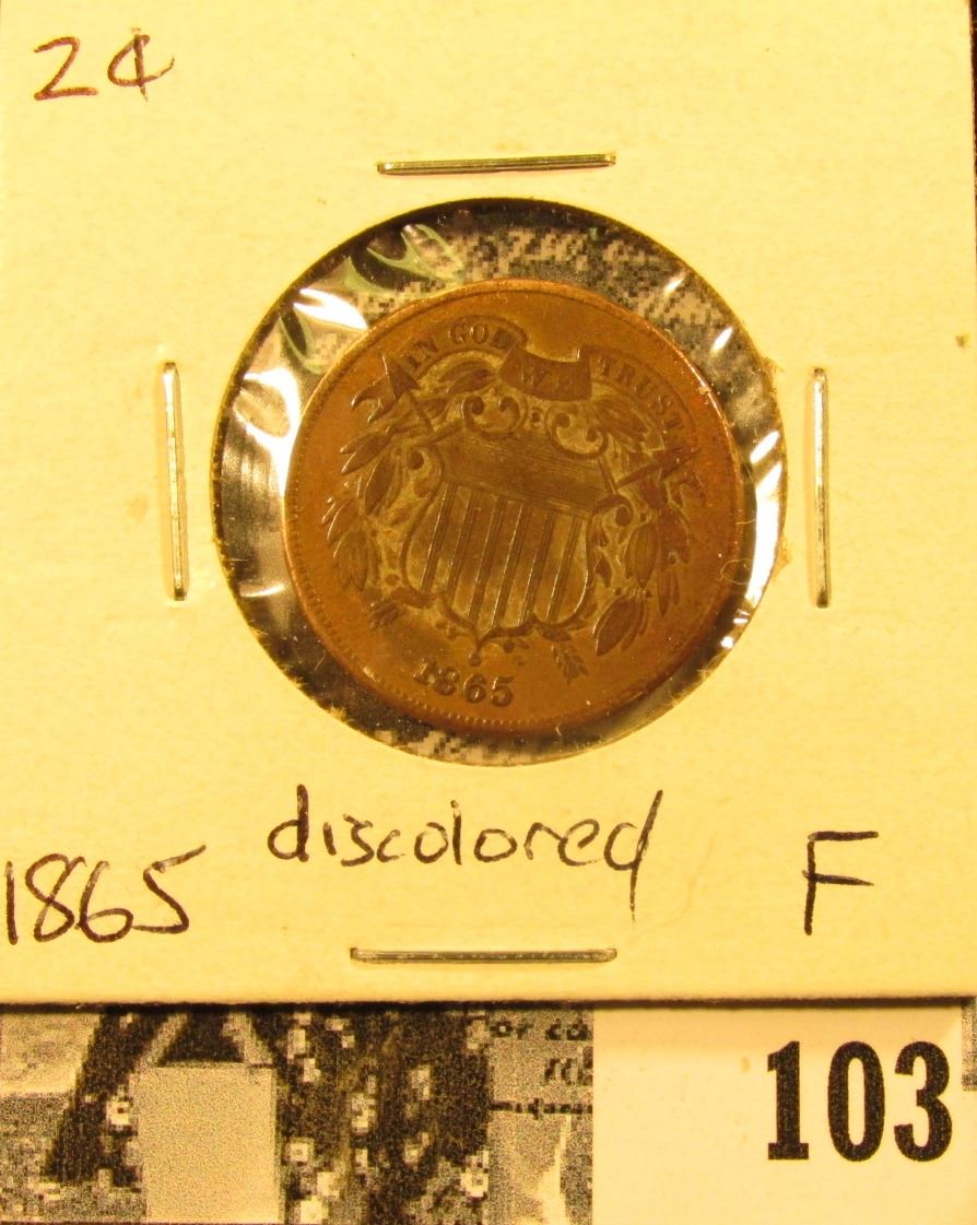 1865 U.S. Two Cent Piece, Fine, discolored.