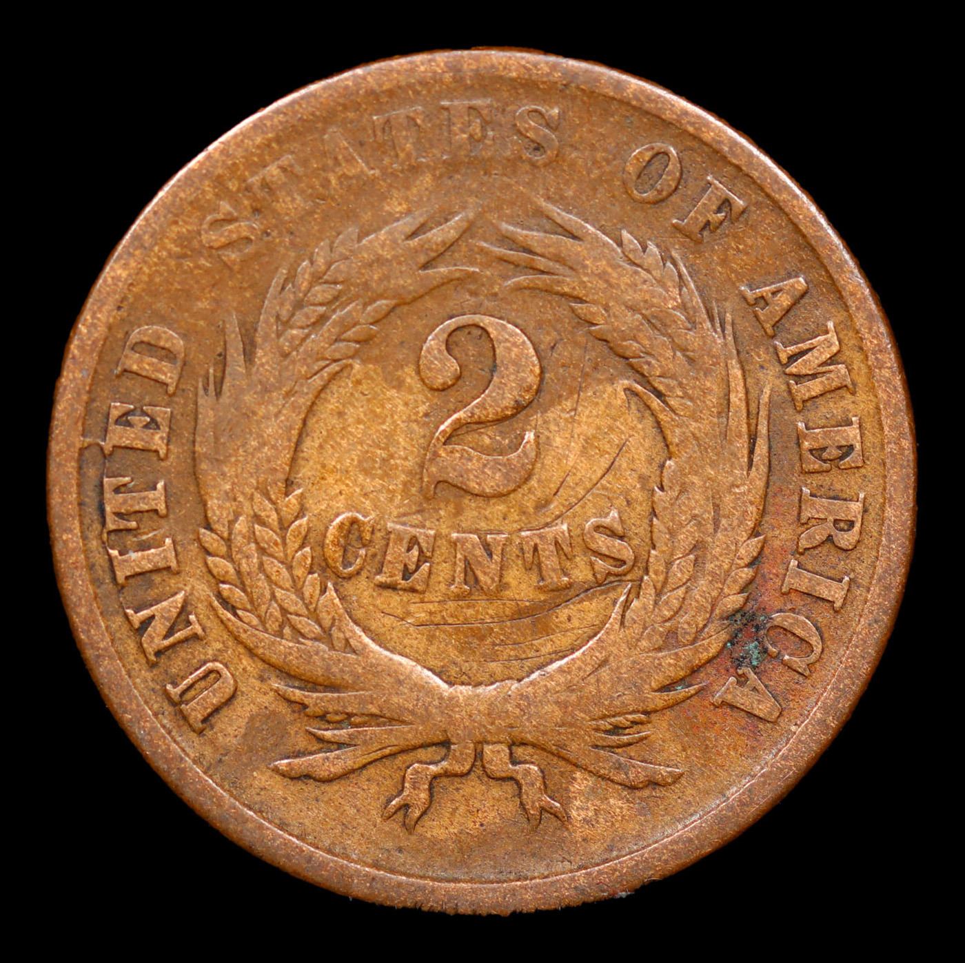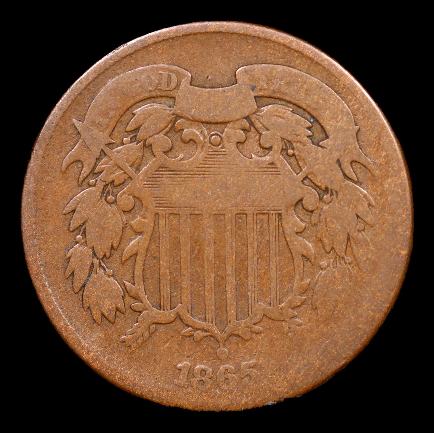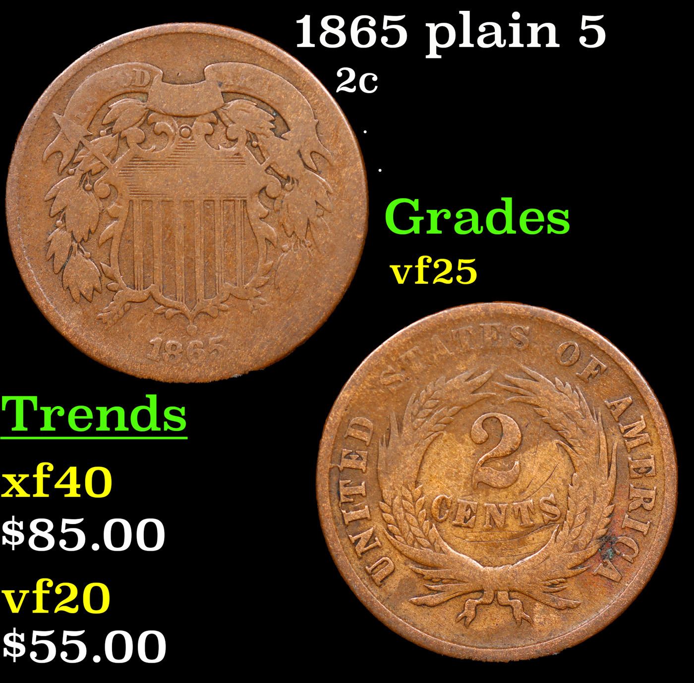 1865 plain 5 Two Cent Piece 2c Grades vf+.