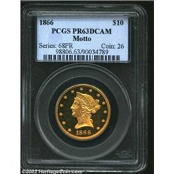 1866 $10 Motto PR63 Deep Cameo PCGS. First year of issue for the With Motto design and of added sign