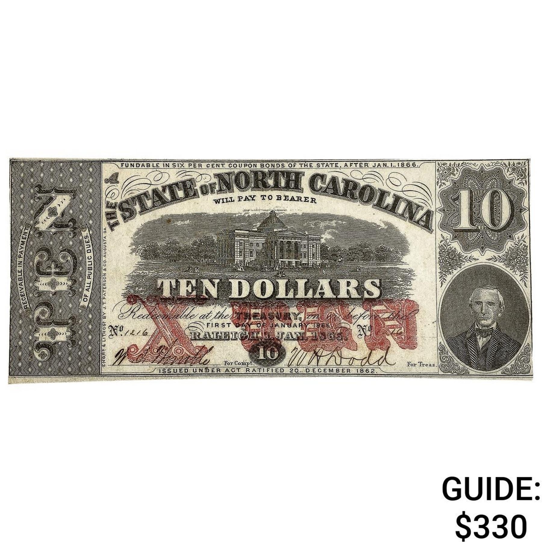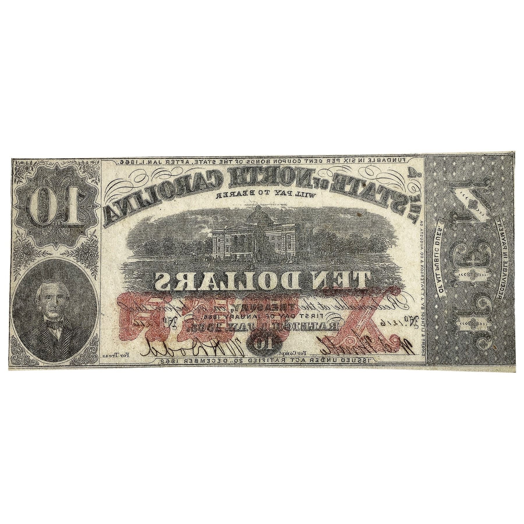 1866 $10 North Carolina Note-Raleigh
