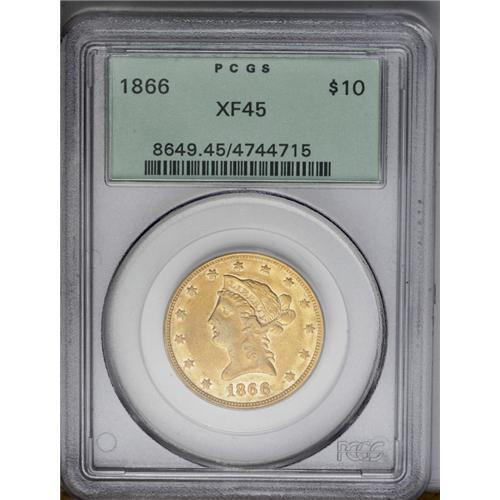 1866 $10 XF45 PCGS. As is always seen, all four of the 1866