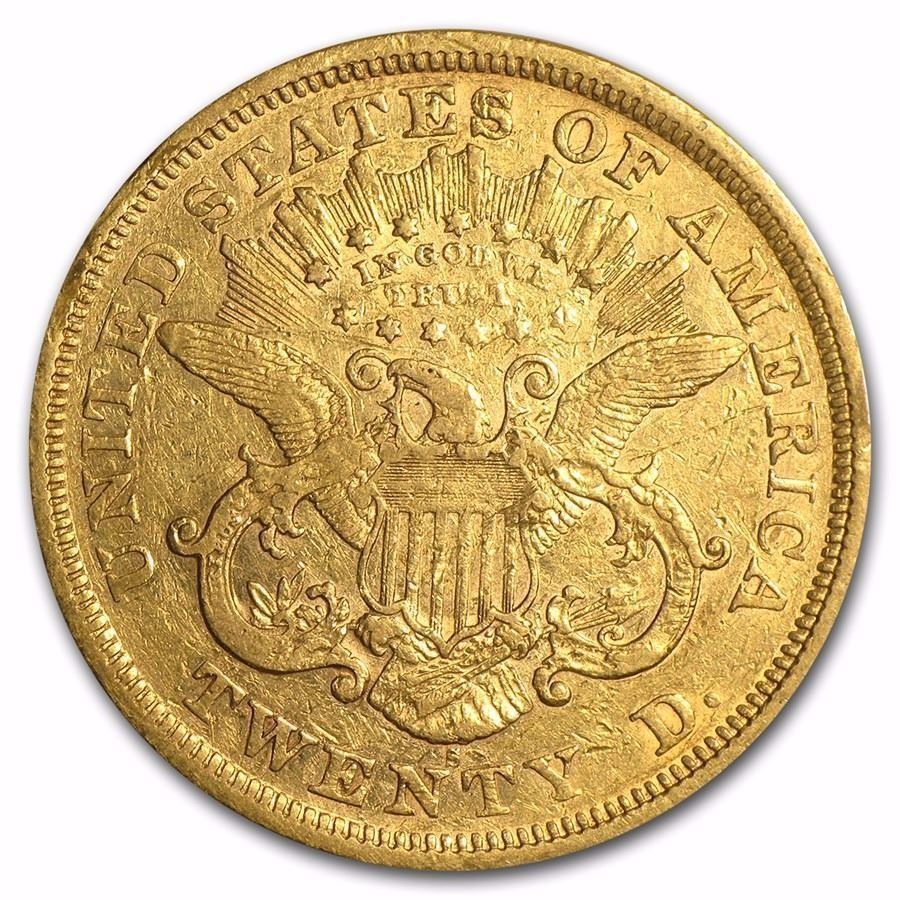 1866-1876 $20 Liberty Gold Double Eagle Type 2 With Motto