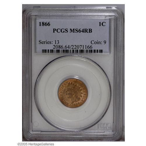 1866 1C MS64 Red and Brown PCGS. This better date Indi 1866[1C] MS64 Red and Brown PCGS.