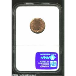 1866 1C MS66 Red NGC. This is the first MS66 Red example of this date that we have offered at auction. For that matter, our records indicate none of the other major auction houses have offered one either. This is a splendid example and a coin that we dare say is unimprovable. The surfaces have a smooth, lustrous finish with original orange-red coloration. There are no reportable abrasions on either side and the striking details are complete throughout. An immensely attractive example of this very scarce, early bronze Cent. Population: 1 in 66, 0 finer (7/02). Important notice: We expect to be auctioning lots at the rate of 200-250 per hour. Sometimes eBay Premier live bid software cannot keep up with that pace, so we strongly recommend that you place a realistic proxy bid now as insurance to avoid disappointment. Also please note that all Heritage/CAA lots purchased through eBay Premier carry a 20% Buyer's Premium. Please make sure you read the Terms and Conditions.