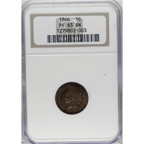 1866 1C PR63 Brown NGC. NGC Census: (4/22). PCGS P
