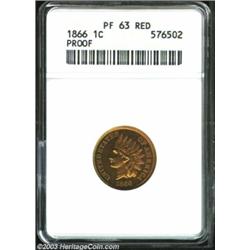 1866 1C PR63 Red ANACS. The orange-red surfaces are appreciably reflective with the look of a higher grade. Fully lustrous and razor sharp with a little light haziness noted over the left obverse. Important notice: We expect to be auctioning lots at the rate of 200-250 per hour. On occasion eBay live bid software cannot keep up with the pace of the auctions where 4-5 lots per minute can hammer down, so we recommend that you place a realistic absentee bid now as insurance to avoid disappointment. Also please note that all Heritage/CAA lots purchased through eBay Live carry a 20% Buyer's Premium. Please make sure you read the Terms and Conditions.