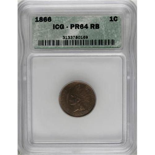 <B>1866 1C PR64 Red and Brown ICG.</B></I> A decisively struck representative of this Reconstruction-era proof issue, predominantly copper-orange with areas of mahogany on the obverse. Faint hairlines are noted in the fields.<BR><BR><B>Coin Engraver:</B> James B. Longacre<BR><BR><b>Shipping:</b> Coins & Currency (<a target="_blank" href="http://www.heritageauctions.com/common/shipping.php">view shipping information</a>)