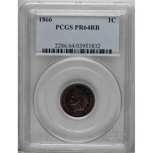 1866 1C PR64 Red and Brown PCGS. Cherry-red, ruby, and