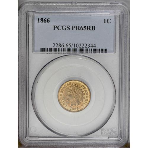 <B>1866<1C> PR65 Red and Brown PCGS.</B></I> A delightful Gem proof with considerable original orange color. The obverse has light brown toning while the reverse has deeper brown and lilac color. Both sides have sharp design elements.