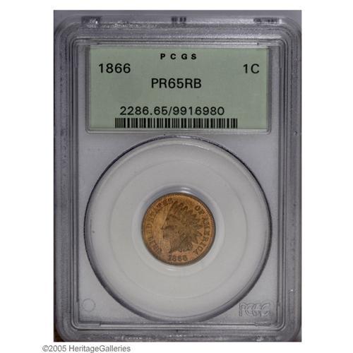 1866 1C PR65 Red and Brown PCGS. Excellent field to mo 1866[1C] PR65 Red and Brown PCGS.