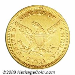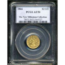 <table><tr><td><TABLE cellSpacing=0 cellPadding=0 width="100%" bgColor=#000000 border=0><TBODY> <TR><TD width="100%"><TABLE cellSpacing=1 cellPadding=3 width="100%" border=0><TBODY><TR><TD width="100%" bgColor=#79735c><FONT face=arial color=#ffffff size=3><B>Description</B> </FONT></TD></TR><TR><TD width="100%" bgColor=#ffffff><FONT face=arial size=2><B>1866 $2 1/2 AU50 PCGS.</B></I> The 1866 is a very scarce Quarter Eagle with only 3,080 pieces struck. Fewer than 50 pieces are believed to exist today in all grades, many of which are XF or lesser grades. Just a little softly struck, the orange-gold surfaces show a few handling marks.<BR><I>From The New Millennium Collection.</B></I> </FONT></TD></TR></TBODY></TABLE></TD></TR></TBODY></TABLE><BR><A name=PricesRealized></A><TABLE cellSpacing=0 cellPadding=0 width="100%" bgColor=#000000 border=0><TBODY><TR><TD width="100%"><TABLE cellSpacing=1 cellPadding=3 width="100%" border=0><TBODY><TR><TD width="100%" bgColor=#79735c><A name=PR><FONT face=arial color=#ffffff size=3><B>Previous Prices from Heritage Auctions</B> </FONT></A></TD></TR><TR><TD bgColor=#f6f6ed><TABLE cellSpacing=0 cellPadding=0 width="100%" border=1><TBODY><TR><TD align=middle width="33%"><B>Date</B></TD><TD align=middle width="33%"><B>Service</B></TD><TD align=middle width="33%"><B>Price</B></TD></TR><TR bgColor=whitesmoke><TD width="33%"><B>01/01/1994</B></TD><TD width="33%">PCGS</TD><TD width="33%">$7,150.00</TD></TR></TBODY></TABLE></TD></TR><TR><TD bgColor=#ffffff><FONT face=arial size=1 ?>PLEASE NOTE: All prices realized reflect the final hammer price PLUS the buyer's premium in auctions that charge a buyer's premium. Each item has a notation at the top of the listing indicating whether that lot included a buyer's premium. Example: A item that sells with a final hammer price of $100 and a 20% buyer's premium will display with a price realized of $120. All information listed is intended to be as accurate as possible, but errors are possible. Please use this guide carefully and inform us of any inaccuracies. </FONT></TD></TR></TBODY></TABLE></TD></TR></TBODY></TABLE><BR><TABLE cellSpacing=0 cellPadding=0 width="100%" bgColor=#000000 border=0><TBODY><TR><TD width="100%"><TABLE cellSpacing=1 cellPadding=3 width="100%" border=0><TBODY><TR><TD width="100%" bgColor=#79735c colSpan=6><FONT face=arial color=#ffffff size=3><B>Price Guide*</B> </FONT></TD></TR><TR bgColor=#f6f6ed><TD align=middle><B>Grade</B> </TD><TD align=middle><B>Coin World<BR>(Trends)</B> </TD><TD align=middle><B>Numismedia<BR>Retail</B> </TD><TD align=middle><B>Numismedia<BR>Wholesale</B> </TD><TD align=middle><B>Coin<BR>Universe</B> </TD><TD align=middle><B>Heritage<BR>Value Index</B> </TD></TR><TR bgColor=#ffffff><TD align=middle>45</TD><TD align=right>$4,400.00</TD><TD align=right>---</TD><TD align=right>---</TD><TD align=right>---</TD><TD align=right>$3,281.46</TD></TR><TR style="FONT-WEIGHT: bold" bgColor=#cccfdd><TD align=middle>50</TD><TD align=right>$7,000.00</TD><TD align=right>---</TD><TD align=right>$5,175.00</TD><TD align=right>---</TD><TD align=right>$4,367.92</TD></TR><TR bgColor=#ffffff><TD align=middle>53</TD><TD align=right>---</TD><TD align=right>---</TD><TD align=right>$5,325.00</TD><TD align=right>---</TD><TD align=right>$5,751.89</TD></TR><TR bgColor=#ffffff><TD colSpan=6><FONT size=1>*All information listed is intended to be as accurate as possible, but errors are possible. No item may be returned or refused based on this information which is provided as a service to our customers. You should contact each pricing source directly to determine the accuracy of this information. </FONT></TD></TR></TBODY></TABLE></TD></TR></TBODY></TABLE><BR><TABLE cellSpacing=0 cellPadding=0 width="100%" bgColor=#000000 border=0><TBODY><TR><TD width="100%"><TABLE cellSpacing=1 cellPadding=3 width="100%" border=0><TBODY><TR><TD width="100%" bgColor=#79735c><FONT face=arial color=#ffffff size=3><B>Population Guide</B> </FONT></TD></TR><TR bgColor=#ffffff><TD align=middle><!-- Begin Output of Population Grid--><TABLE cellSpacing=0 cellPadding=0 width="100%" border=0><TBODY><TR><TD vAlign=center><TABLE cellSpacing=0 width="100%" border=1 cellsadding="3"><TBODY><TR><TD vAlign=center><TABLE cellSpacing=0 cellPadding=3 width="100%" border=1><TBODY><TR><TD vAlign=center align=middle bgColor=#f0f1e8 colSpan=2 <CENTER><FONT face=Arial size=2><B>PCGS Pop </B></FONT><CENTER></CENTER></TD><TD vAlign=center align=middle bgColor=#f0f1e8 colSpan=2><CENTER><FONT face=Arial size=2><B>NGC Pop</B></CENTER></FONT></TD></TR><TR><TD vAlign=center><FONT face=Arial size=2>(50)</FONT> </TD><TD vAlign=center align=right><FONT face=Arial size=2>1</FONT> </TD><TD vAlign=center><FONT face=Arial size=2>(50)</FONT> </TD><TD vAlign=center align=right><FONT face=Arial size=2>3</FONT> </TD></TR><TR><TD vAlign=center><FONT face=Arial size=2>(>50)</FONT> </TD><TD vAlign=center align=right><FONT face=Arial size=2>8</FONT> </TD><TD vAlign=center><FONT face=Arial size=2>(>50)</FONT> </TD><TD vAlign=center align=right><FONT face=Arial size=2>12</FONT> </TD></TR></TBODY></TABLE></TD></TR></TBODY></TABLE></TD></TR></TBODY></TABLE><!-- End Output of Population Grid--></TD></TR></TBODY></TABLE></TD></TR></TBODY></TABLE><BR><TABLE cellSpacing=0 cellPadding=0 width="100%" bgColor=#000000 border=0><TBODY><TR> Important notice: Heritage usually auctions material at the rate of 200-250 lots per hour. On some occasions eBay Live bid software or the Internet may not be able to keep up with the pace of the auction. We recommend placing a realistic absentee bid now as insurance to avoid disappointment. Occasionally the auctioneer may eliminate or reject an eBay Live bid, and the auctioneer may also reopen a lot after the close of the eBay live bidding (usually because we missed an audience bid), and may reject your bid even if it shows you as the winning bidder. By bidding via eBay Live, you agree that Heritage may award the lot to another bidder at its sole 