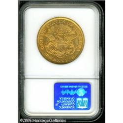 <B>1866 $20 XF45 NGC.</B></I> This honey-gold piece is attractive for the grade, since bagmarks are few in number and severity. The motto IN GOD WE TRUST was introduced in 1866 on the denomination, it was apparently not initially hubbed since several letters in the motto (the N, G, and R) are repunched.<BR><I>From The Mike Jacobson Collection.</B></I> Lot:9022