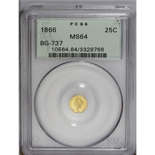 1866 25C Liberty Octagonal 25 Cents, BG-737, R.5, MS64 1866[25C] Liberty Octagonal 25 Cents, BG-737,