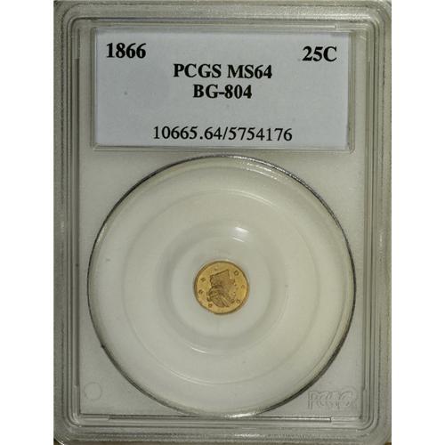 1866 25C Liberty Round 25 Cents, BG-804, R.4, MS64 P