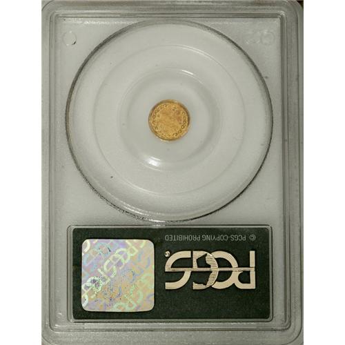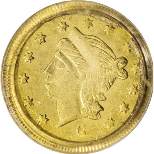 <B>1866 25C Liberty Round 25 Cents, BG-823, R.7, MS63 PCGS.</B></I> The single finest PCGS-certified example of this rare Breen-Gillio variety. Its closest competitors are two pieces certified as MS61. Glimpses of cherry-red toning grace the fields. A few letters in DOLLAR are softly brought up. Housed in a green label holder.<BR><I>From The Diamond K Collection of California Fractional Gold.</B></I><BR><BR><b>Shipping:</b> Coins & Currency (<a target="_blank" href="http://www.heritageauctions.com/common/shipping.php">view shipping information</a>)