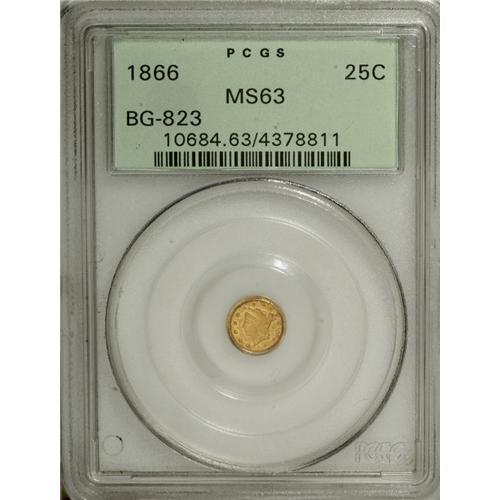 1866 25C Liberty Round 25 Cents, BG-823, R.7, MS63 PCG
