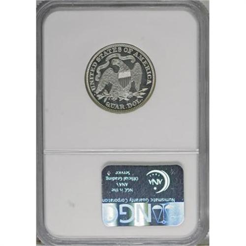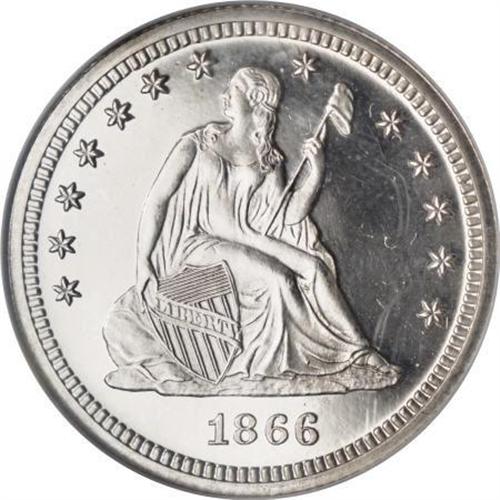 <B>1866 25C Motto PR66 Cameo NGC.</B></I> An uncommonly beautiful representative from this first Motto proof issue of 725 specimens, decisively struck with gleaming and essentially untoned fields. The richly frosted snow-white devices offer excellent contrast with the watery mirrors. Wonderful preservation and strong eye appeal. Census: 3 in 66 Cameo, 3 finer (12/07).<BR><BR><b>Shipping:</b> Coins & Currency (<a target="_blank" href="http://www.heritageauctions.com/common/shipping.php">view shipping information</a>)