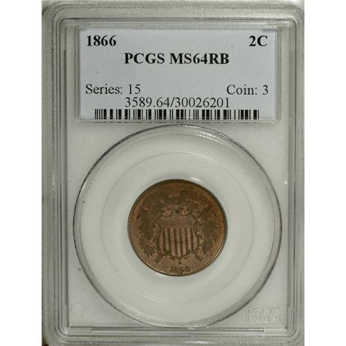1866 2C MS64 Red and Brown PCGS, essentially free from