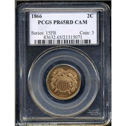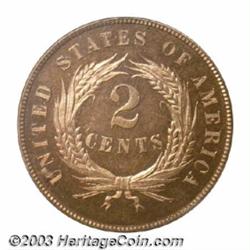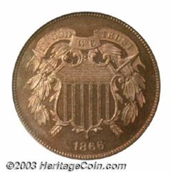 <table><tr><td><TABLE cellSpacing=0 cellPadding=0 width="100%" bgColor=#000000 border=0><TBODY> <TR><TD width="100%"><TABLE cellSpacing=1 cellPadding=3 width="100%" border=0><TBODY><TR><TD width="100%" bgColor=#79735c><FONT face=arial color=#ffffff size=3><B>Description</B> </FONT></TD></TR><TR><TD width="100%" bgColor=#ffffff><FONT face=arial size=2><B>1866 2C PR65 Red Cameo PCGS.</B></I> From a proof mintage of 725 pieces, with few of the survivors from that mintage of a grade that equals the coin presented here. The lightly frosted motifs and deeply mirrored fields form a pleasing cameo contrast. Examination under low magnification reveals some faint speckling, but it is far from unpleasant and even the fussiest of collectors would be hard pressed to locate them without our comments. </FONT></TD></TR></TBODY></TABLE></TD></TR></TBODY></TABLE><BR><A name=PricesRealized></A><TABLE cellSpacing=0 cellPadding=0 width="100%" bgColor=#000000 border=0><TBODY><TR><TD width="100%"><TABLE cellSpacing=1 cellPadding=3 width="100%" border=0><TBODY><TR><TD width="100%" bgColor=#79735c><A name=PR><FONT face=arial color=#ffffff size=3><B>Previous Prices from Heritage Auctions</B> </FONT></A></TD></TR><TR><TD bgColor=#f6f6ed>No Prior Data Recorded </TD></TR><TR><TD bgColor=#ffffff><FONT face=arial size=1 ?>PLEASE NOTE: All prices realized reflect the final hammer price PLUS the buyer's premium in auctions that charge a buyer's premium. Each item has a notation at the top of the listing indicating whether that lot included a buyer's premium. Example: A item that sells with a final hammer price of $100 and a 20% buyer's premium will display with a price realized of $120. All information listed is intended to be as accurate as possible, but errors are possible. Please use this guide carefully and inform us of any inaccuracies. </FONT></TD></TR></TBODY></TABLE></TD></TR></TBODY></TABLE><BR><TABLE cellSpacing=0 cellPadding=0 width="100%" bgColor=#000000 border=0><TBODY><TR><TD width="100%"><TABLE cellSpacing=1 cellPadding=3 width="100%" border=0><TBODY><TR><TD width="100%" bgColor=#79735c colSpan=6><FONT face=arial color=#ffffff size=3><B>Price Guide*</B> </FONT></TD></TR><TR bgColor=#f6f6ed><TD align=middle><B>Grade</B> </TD><TD align=middle><B>Coin World<BR>(Trends)</B> </TD><TD align=middle><B>Numismedia<BR>Retail</B> </TD><TD align=middle><B>Numismedia<BR>Wholesale</B> </TD><TD align=middle><B>Coin<BR>Universe</B> </TD><TD align=middle><B>Heritage<BR>Value Index</B> </TD></TR><TR bgColor=#ffffff><TD align=middle>64</TD><TD align=right>---</TD><TD align=right>---</TD><TD align=right>---</TD><TD align=right>---</TD><TD align=right>---</TD></TR><TR style="FONT-WEIGHT: bold" bgColor=#cccfdd><TD align=middle>65</TD><TD align=right>---</TD><TD align=right>---</TD><TD align=right>---</TD><TD align=right>---</TD><TD align=right>---</TD></TR><TR bgColor=#ffffff><TD align=middle>66</TD><TD align=right>---</TD><TD align=right>---</TD><TD align=right>---</TD><TD align=right>---</TD><TD align=right>---</TD></TR><TR bgColor=#ffffff><TD colSpan=6><FONT size=1>*All information listed is intended to be as accurate as possible, but errors are possible. No item may be returned or refused based on this information which is provided as a service to our customers. You should contact each pricing source directly to determine the accuracy of this information. </FONT></TD></TR></TBODY></TABLE></TD></TR></TBODY></TABLE><BR><TABLE cellSpacing=0 cellPadding=0 width="100%" bgColor=#000000 border=0><TBODY><TR><TD width="100%"><TABLE cellSpacing=1 cellPadding=3 width="100%" border=0><TBODY><TR><TD width="100%" bgColor=#79735c><FONT face=arial color=#ffffff size=3><B>Population Guide</B> </FONT></TD></TR><TR bgColor=#ffffff><TD align=middle><!-- Begin Output of Population Grid--><TABLE cellSpacing=0 cellPadding=0 width="100%" border=0><TBODY><TR><TD vAlign=center><TABLE cellSpacing=0 width="100%" border=1 cellsadding="3"><TBODY><TR><TD vAlign=center><TABLE cellSpacing=0 cellPadding=3 width="100%" border=1><TBODY><TR><TD vAlign=center align=middle bgColor=#f0f1e8 colSpan=2 <CENTER><FONT face=Arial size=2><B>PCGS Pop </B></FONT><CENTER></CENTER></TD><TD vAlign=center align=middle bgColor=#f0f1e8 colSpan=2><CENTER><FONT face=Arial size=2><B>NGC Pop</B></CENTER></FONT></TD></TR><TR><TD vAlign=center><FONT face=Arial size=2>(65)</FONT> </TD><TD vAlign=center align=right><FONT face=Arial size=2>1</FONT> </TD><TD vAlign=center><FONT face=Arial size=2>(65)</FONT> </TD><TD vAlign=center align=right><FONT face=Arial size=2>0</FONT> </TD></TR><TR><TD vAlign=center><FONT face=Arial size=2>(>65)</FONT> </TD><TD vAlign=center align=right><FONT face=Arial size=2>1</FONT> </TD><TD vAlign=center><FONT face=Arial size=2>(>65)</FONT> </TD><TD vAlign=center align=right><FONT face=Arial size=2>0</FONT> </TD></TR></TBODY></TABLE></TD></TR></TBODY></TABLE></TD></TR></TBODY></TABLE><!-- End Output of Population Grid--></TD></TR></TBODY></TABLE></TD></TR></TBODY></TABLE><BR><TABLE cellSpacing=0 cellPadding=0 width="100%" bgColor=#000000 border=0><TBODY><TR> Important notice: Heritage usually auctions material at the rate of 200-250 lots per hour. On some occasions eBay Live bid software or the Internet may not be able to keep up with the pace of the auction. We recommend placing a realistic absentee bid now as insurance to avoid disappointment. Occasionally the auctioneer may eliminate or reject an eBay Live bid, and the auctioneer may also reopen a lot after the close of the eBay live bidding (usually because we missed an audience bid), and may reject your bid even if it shows you as the winning bidder. By bidding via eBay Live, you agree that Heritage may award the lot to another bidder at its sole discretion under the circumstances described above or any other reasonable circumstances. Also please note that all Heritage lots purchased through eBay Live carry a 20% Buyer's Premium. Please make sure you read the Terms and Conditions before you bid.</TD></TR>