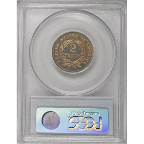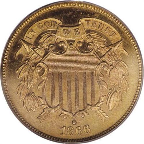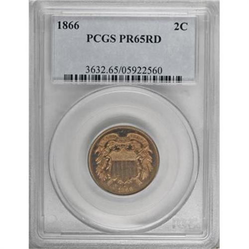 <B>1866 2C PR65 Red PCGS.</B></I> An outstanding proof two cent piece. Even after several years of increasing prices, these type coins are still underrated when compared to type coins of other denominations. Although not designated on the insert, the devices on this coin show a light bit of frost which gives a slight but noticeable cameo effect. Light and bright and deeply mirrored with virtually flawless surfaces. Population: 32 in 65, 2 finer (8/07).<BR><BR><B>Coin Engraver:</B> James B. Longacre<BR><BR><b>Shipping:</b> Coins & Currency (<a target="_blank" href="http://www.heritageauctions.com/common/shipping.php">view shipping information</a>)