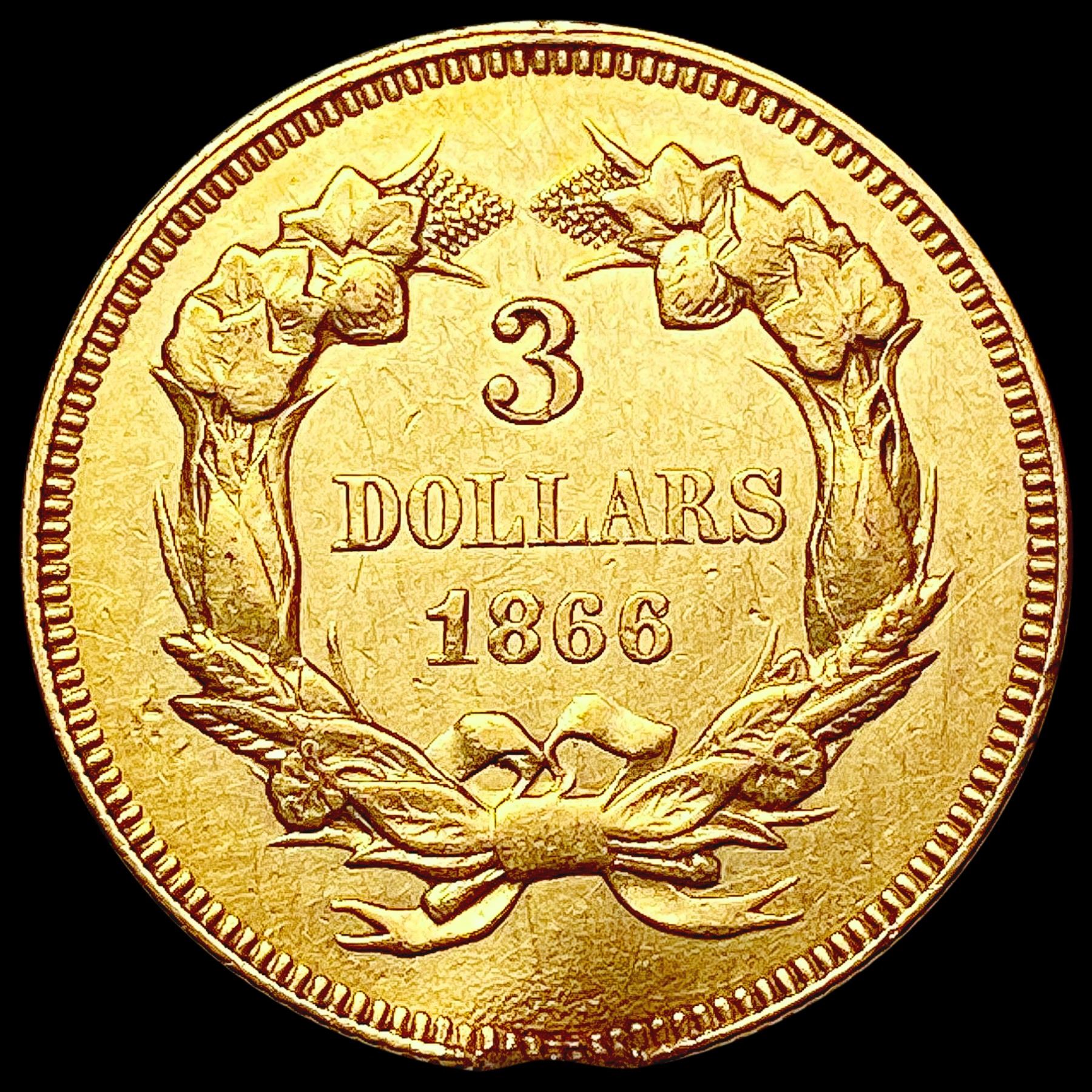 1866 $3 Gold Piece CLOSELY UNCIRCULATED