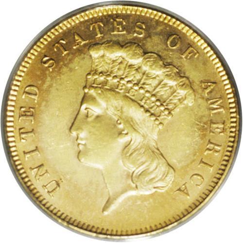 1866 $3 MS62 PCGS. From an original mintage of 4,000 b