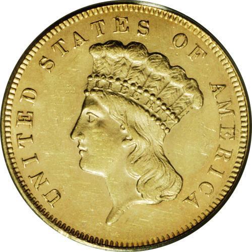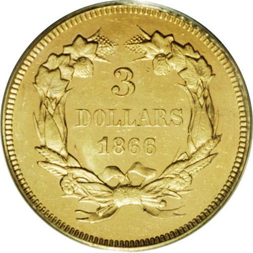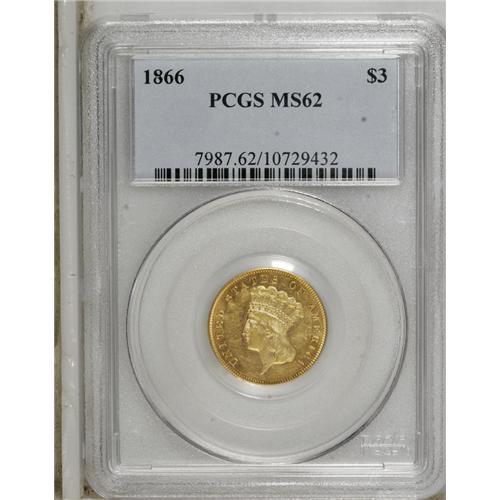 1866 $3 MS62 PCGS. Just 4,000 business strikes were pr