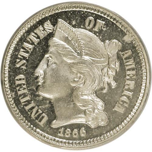 <B>1866 3CN PR64 Cameo PCGS.</B></I> PCGS Population (13/28). NGC Census: (14/29). (#83762)<BR><BR><b>Shipping:</b> Coins & Currency (<a target="_blank" href="http://www.heritageauctions.com/common/shipping.php">view shipping information</a>)