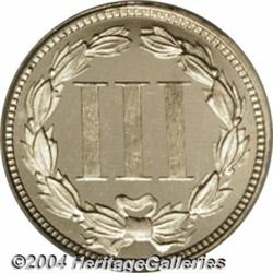 <table><tr><td><table><tr><td>1866 3CN PR66 Cameo PCGS. Fully brilliant with stark contrast on both obverse and reverse. One tiny abrasion is seen on Liberty's cheek that can serve as a future identifier. An extraordinary representative of this early proof Three Cent Nickel. Population: 6 in 66 Cameo, 1 finer (2/04). <BR><BR><B>Important notice:</B> Heritage usually auctions material at the rate of 200-250 lots per hour. On some occasions eBay Live bid software or the Internet may not be able to keep up with the pace of the auction. We recommend placing a realistic absentee bid now as insurance to avoid disappointment. Occasionally the auctioneer may eliminate or reject an eBay Live bid, and the auctioneer may also reopen a lot after the close of the eBay live bidding (usually because we missed an audience bid), and may reject your bid even if it shows you as the winning bidder. By bidding via eBay Live, you agree that Heritage may award the lot to another bidder at its sole discretion under the circumstances described above or any other reasonable circumstances. Since eBay bids are not shown to us until we open the lot on the floor, we treat those bids just like floor bids. In most cases the floor responds before the eBay bid is presented to us, due to Internet lag time, so for consistency we have made it a policy that floor bids are always considered first over tie eBay live bids. Also please note that all Heritage lots purchased through eBay Live carry a 20% Buyer's Premium. Please make sure you read the Terms and Conditions before you bid. <BR><BR><B>IMPORTANT ANNOUNCEMENT ABOUT RESERVES:</B> Heritage now divulges all reserves on its web site 7 days before every auction. If you want to know whether the reserve on this lot has been met, and if not, what the reserve amount is, please visit this lot page on the HeritageCoin.com web site, or email: bid@HeritageGalleries.com </span></font></td></tr></table></td></tr></table>