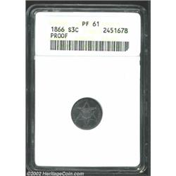 1866 3CS PR61 ANACS. Deep slate-gray and blue toning covers each side with good reflectivity remaini