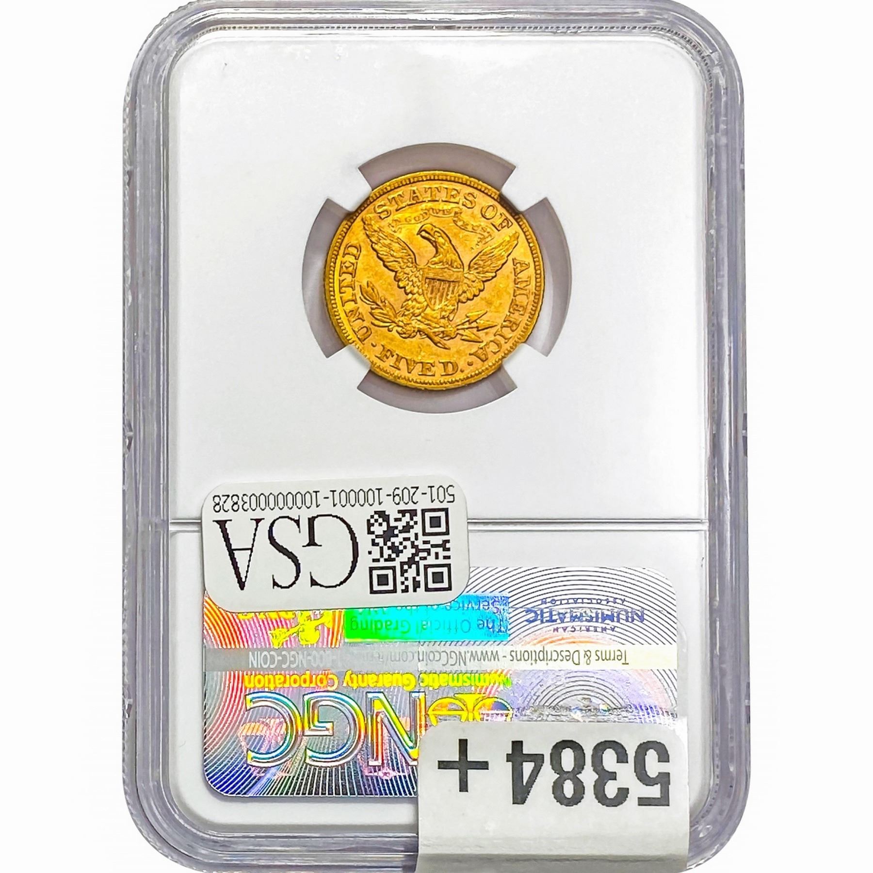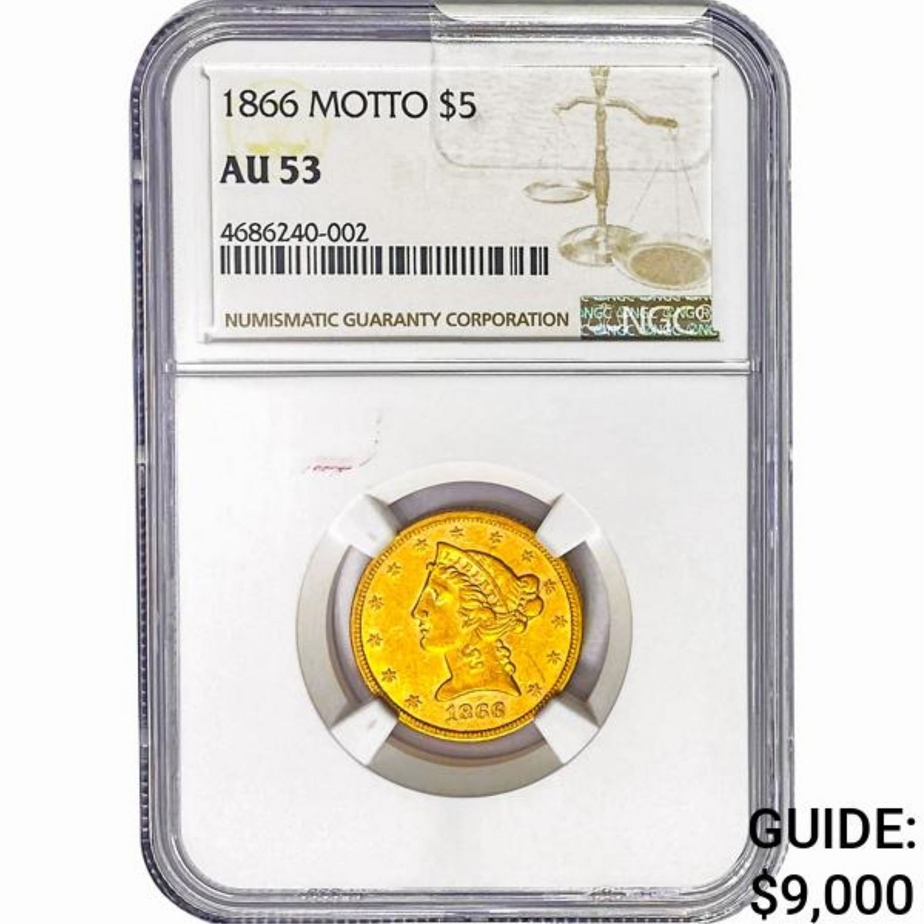 1866 $5 Gold Half Eagle NGC AU53 Motto