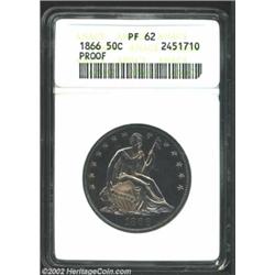 1866 50C PR62 ANACS. Sharply impressed in all areas, the glossy textured surfaces shine through curi