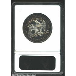1866 50C PR62 ANACS. Sharply impressed in all areas, the glossy textured surfaces shine through curious, somewhat mottled, charcoal and copper-olive toning. Scattered hairlines are also evident at certain angles. Important notice: We expect to be auctioning lots at the rate of 200-250 per hour. Sometimes eBay Premier live bid software cannot keep up with that pace, so we strongly recommend that you place a realistic proxy bid now as insurance to avoid disappointment. Also please note that all Heritage/CAA lots purchased through eBay Premier carry a 20% Buyer's Premium. Please make sure you read the Terms and Conditions.