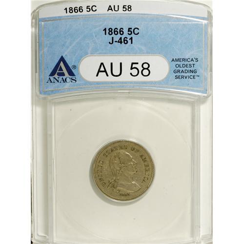 1866 5C Five Cents, Judd-461, Pollock-535, R.5, AU58 A