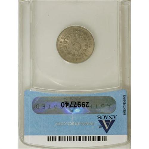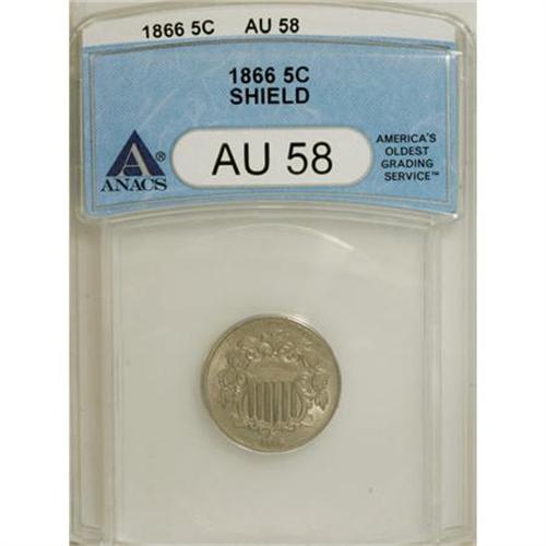 <B>1866 5C Rays AU58 ANACS.</B></I> NGC Census: (69/1072). PCGS Population (85/999). Mintage: 14,742,500. Numismedia Wsl. Price for NGC/PCGS coin in AU58: $183. (#3790)<BR><BR><B>Coin Engraver:</B> James B. Longacre<BR><BR><b>Shipping:</b> Coins & Currency (<a target="_blank" href="http://www.heritageauctions.com/common/shipping.php">view shipping information</a>\)