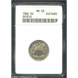 1866 5C Rays MS63 ANACS. Bright overall and lightly toned with irregular striking details, as usuall