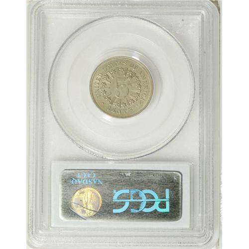 <B>1866 5C Rays MS64 PCGS.</B></I> Soft peach and rose patina covers this Choice nickel. Nicely struck with few mentionable marks, though carbon flecks are present on each side. A die crack runs through the lowest olive leaves on the right obverse.<BR><I>From The Cocoa Beach Collection.</B></I><BR><BR><b>Shipping:</b> Coin/Currency (<a target="_blank" href="http://www.heritageauctions.com/common/shipping.php">view shipping information</a>)