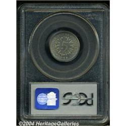 <B>1866<5C> Rays MS64 PCGS.</B></I> Dappled olive toning accents light-gray and pale-blue coloration on both the obverse and reverse. The design features are generally well impressed, the only noticeable softness occurring in a small area of the middle portion of the horizontal shield lines. Most of the stars, with just two or three exceptions, show strong central detail. Likewise, most of the rays have sharp linear definition. The surfaces of this coin are well preserved, and do not exhibit any significant abrasions or spotting.<BR><I>From The Willamette Collection.</B></I> <BR><BR><B>Important notice:</B> Heritage usually auctions material at the rate of 200-250 lots per hour. On some occasions eBay Live bid software or the Internet may not be able to keep up with the pace of the auction. We recommend placing a realistic absentee bid now as insurance to avoid disappointment. Occasionally the auctioneer may eliminate or reject an eBay Live bid, and the auctioneer may also reopen a lot after the close of the eBay live bidding (usually because we missed an audience bid), and may reject your bid even if it shows you as the winning bidder. By bidding via eBay Live, you agree that Heritage may award the lot to another bidder at its sole discretion under the circumstances described above or any other reasonable circumstances. Since eBay bids are not shown to us until we open the lot on the floor, we treat those bids just like floor bids. In most cases the floor responds before the eBay bid is presented to us, due to Internet lag time, so for consistency we have made it a policy that floor bids are always considered first over tie eBay live bids. Also please note that all Heritage lots purchased through eBay Live carry a 20% Buyer's Premium. Please make sure you read the Terms and Conditions before you bid. </span></font></tr></table></td></tr></table>