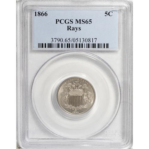 1866 5C Rays MS65 PCGS. An attractive piece, highly lu