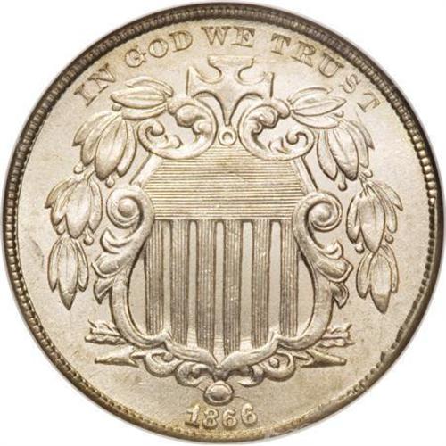 <B>1866 5C Rays MS66 NGC.</B></I> Whispers of barely discernible tan-gold patina rest on highly lustrous surfaces that exhibit sharply struck design elements. Close examination indicates both sides are devoid of significant marks. Some faint die cracks occur at the reverse periphery. Census: 19 in 66, 0 finer (1/08).<BR><BR><B>Coin Engraver:</B> James B. Longacre<BR><BR><b>Shipping:</b> Coins & Currency (<a target="_blank" href="http://www.heritageauctions.com/common/shipping.php">view shipping information</a>)