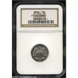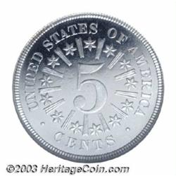 <table><tr><td><TABLE cellSpacing=0 cellPadding=0 width="100%" bgColor=#000000 border=0><TBODY> <TR><TD width="100%"><TABLE cellSpacing=1 cellPadding=3 width="100%" border=0><TBODY><TR><TD width="100%" bgColor=#79735c><FONT face=arial color=#ffffff size=3><B>Description</B> </FONT></TD></TR><TR><TD width="100%" bgColor=#ffffff><FONT face=arial size=2><B>1866 5C Rays PR66 Cameo NGC.</B></I> The Shield Nickel series of 1866-1883 arose partly out of Uncle Sam's desire to retire the fractional currency that had become prevalent during the Civil War, and partly out of his intent to produce inexpensive minor coinage that would generate profit for the federal government. The premier specimen strikings of this type are the only readily collectible proof Shield Nickels that display rays between the reverse stars. At the PR66 level of preservation, Peters and Mohon (1995) rank the 1866 Rays 13th out of the 20 proof deliveries in this series. One of 12 so graded examples at NGC with a Cameo designation (only five are finer with this finish, 7/03), this untoned Gem is boldly contrasted between frosty devices and mirrored fields. Sharply impressed with no post-production distractions to report. Accuracy compels us to mention a couple of tiny, shallow planchet voids on the reverse (as struck) that are visible under magnification--features that are not uncommon for early proof Nickels. </FONT></TD></TR></TBODY></TABLE></TD></TR></TBODY></TABLE><BR><A name=PricesRealized></A><TABLE cellSpacing=0 cellPadding=0 width="100%" bgColor=#000000 border=0><TBODY><TR><TD width="100%"><TABLE cellSpacing=1 cellPadding=3 width="100%" border=0><TBODY><TR><TD width="100%" bgColor=#79735c><A name=PR><FONT face=arial color=#ffffff size=3><B>Previous Prices from Heritage Auctions</B> </FONT></A></TD></TR><TR><TD bgColor=#f6f6ed><TABLE cellSpacing=0 cellPadding=0 width="100%" border=1><TBODY><TR><TD align=middle width="33%"><B>Date</B></TD><TD align=middle width="33%"><B>Service</B></TD><TD align=middle width="33%"><B>Price</B></TD></TR><TR bgColor=whitesmoke><TD width="33%"><B>03/05/2002</B></TD><TD width="33%">NGC</TD><TD width="33%">$4,255.00</TD></TR><TR bgColor=whitesmoke><TD width="33%"><B>07/29/2003</B></TD><TD width="33%">PCGS</TD><TD width="33%">$4,140.00</TD></TR><TR bgColor=whitesmoke><TD width="33%"><B>05/03/2003</B></TD><TD width="33%">NGC</TD><TD width="33%">$4,485.00</TD></TR><TR bgColor=whitesmoke><TD width="33%"><B>01/11/2003</B></TD><TD width="33%">NGC</TD><TD width="33%">$3,910.00</TD></TR><TR bgColor=whitesmoke><TD width="33%"><B>07/30/2002</B></TD><TD width="33%">PCGS</TD><TD width="33%">$7,130.00</TD></TR><TR bgColor=whitesmoke><TD width="33%"><B>11/15/2001</B></TD><TD width="33%">NGC</TD><TD width="33%">$4,025.00</TD></TR></TBODY></TABLE></TD></TR><TR><TD bgColor=#ffffff><FONT face=arial size=1 ?>PLEASE NOTE: All prices realized reflect the final hammer price PLUS the buyer's premium in auctions that charge a buyer's premium. Each item has a notation at the top of the listing indicating whether that lot included a buyer's premium. Example: A item that sells with a final hammer price of $100 and a 20% buyer's premium will display with a price realized of $120. All information listed is intended to be as accurate as possible, but errors are possible. Please use this guide carefully and inform us of any inaccuracies. </FONT></TD></TR></TBODY></TABLE></TD></TR></TBODY></TABLE><BR><TABLE cellSpacing=0 cellPadding=0 width="100%" bgColor=#000000 border=0><TBODY><TR><TD width="100%"><TABLE cellSpacing=1 cellPadding=3 width="100%" border=0><TBODY><TR><TD width="100%" bgColor=#79735c colSpan=6><FONT face=arial color=#ffffff size=3><B>Price Guide*</B> </FONT></TD></TR><TR bgColor=#f6f6ed><TD align=middle><B>Grade</B> </TD><TD align=middle><B>Coin World<BR>(Trends)</B> </TD><TD align=middle><B>Numismedia<BR>Retail</B> </TD><TD align=middle><B>Numismedia<BR>Wholesale</B> </TD><TD align=middle><B>Coin<BR>Universe</B> </TD><TD align=middle><B>Heritage<BR>Value Index</B> </TD></TR><TR bgColor=#ffffff><TD align=middle>65</TD><TD align=right>---</TD><TD align=right>---</TD><TD align=right>---</TD><TD align=right>$5,500.00</TD><TD align=right>$3,023.33</TD></TR><TR style="FONT-WEIGHT: bold" bgColor=#cccfdd><TD align=middle>66</TD><TD align=right>---</TD><TD align=right>---</TD><TD align=right>---</TD><TD align=right>---</TD><TD align=right>---</TD></TR><TR bgColor=#ffffff><TD align=middle>67</TD><TD align=right>---</TD><TD align=right>---</TD><TD align=right>---</TD><TD align=right>---</TD><TD align=right>---</TD></TR><TR bgColor=#ffffff><TD colSpan=6><FONT size=1>*All information listed is intended to be as accurate as possible, but errors are possible. No item may be returned or refused based on this information which is provided as a service to our customers. You should contact each pricing source directly to determine the accuracy of this information. </FONT></TD></TR></TBODY></TABLE></TD></TR></TBODY></TABLE><BR><TABLE cellSpacing=0 cellPadding=0 width="100%" bgColor=#000000 border=0><TBODY><TR><TD width="100%"><TABLE cellSpacing=1 cellPadding=3 width="100%" border=0><TBODY><TR><TD width="100%" bgColor=#79735c><FONT face=arial color=#ffffff size=3><B>Population Guide</B> </FONT></TD></TR><TR bgColor=#ffffff><TD align=middle><!-- Begin Output of Population Grid--><TABLE cellSpacing=0 cellPadding=0 width="100%" border=0><TBODY><TR><TD vAlign=center><TABLE cellSpacing=0 width="100%" border=1 cellsadding="3"><TBODY><TR><TD vAlign=center><TABLE cellSpacing=0 cellPadding=3 width="100%" border=1><TBODY><TR><TD vAlign=center align=middle bgColor=#f0f1e8 colSpan=2 <CENTER><FONT face=Arial size=2><B>PCGS Pop </B></FONT><CENTER></CENTER></TD><TD vAlign=center align=middle bgColor=#f0f1e8 colSpan=2><CENTER><FONT face=Arial size=2><B>NGC Pop</B></CENTER></FONT></TD></TR><TR><TD vAlign=center><FONT face=Arial size=2>(66)</FONT> </TD><TD vAlign=center align=right><FONT face=Arial size=2>19</FONT> </TD><TD vAlign=center><FONT fa
