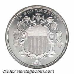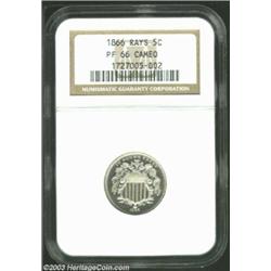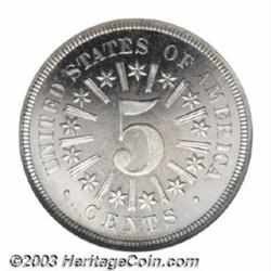 <TABLE cellSpacing=0 cellPadding=0 width="100%" bgColor=#000000 border=0><TBODY><TR><TD width="100%"><TABLE cellSpacing=1 cellPadding=3 width="100%" border=0><TBODY><TR><TD width="100%" bgColor=#79735c><FONT face=arial color=#ffffff size=3><B>Description</B> </FONT></TD></TR><TR><TD width="100%" bgColor=#ffffff><FONT face=arial size=2><B>1866 5C Rays PR66 Cameo NGC.</B></I> The first of two Superb Cameo specimens from the Nickel denomination's initial year of production. Both sides' mirrored fields display excellent depth and there is appreciable contrast with all of the devices. </FONT></TD></TR></TBODY></TABLE></TD></TR></TBODY></TABLE><BR><A name=PricesRealized></A><TABLE cellSpacing=0 cellPadding=0 width="100%" bgColor=#000000 border=0><TBODY><TR><TD width="100%"><TABLE cellSpacing=1 cellPadding=3 width="100%" border=0><TBODY><TR><TD width="100%" bgColor=#79735c><A name=PR><FONT face=arial color=#ffffff size=3><B>Previous Prices from Heritage Auctions</B> </FONT></A></TD></TR><TR><TD bgColor=#f6f6ed><TABLE cellSpacing=0 cellPadding=0 width="100%" border=1><TBODY><TR><TD align=middle width="33%"><B>Date</B></TD><TD align=middle width="33%"><B>Service</B></TD><TD align=middle width="33%"><B>Price</B></TD></TR><TR bgColor=whitesmoke><TD width="33%"><B>07/29/2003</B></TD><TD width="33%">PCGS</TD><TD width="33%">$4,140.00</TD></TR><TR bgColor=whitesmoke><TD width="33%"><B>11/23/2002</B></TD><TD width="33%">PCGS</TD><TD width="33%">$4,255.00</TD></TR><TR bgColor=whitesmoke><TD width="33%"><B>01/11/2003</B></TD><TD width="33%">NGC</TD><TD width="33%">$3,910.00</TD></TR><TR bgColor=whitesmoke><TD width="33%"><B>04/23/2002</B></TD><TD width="33%">NGC</TD><TD width="33%">$3,910.00</TD></TR><TR bgColor=whitesmoke><TD width="33%"><B>11/15/2001</B></TD><TD width="33%">NGC</TD><TD width="33%">$4,025.00</TD></TR><TR bgColor=whitesmoke><TD width="33%"><B>05/03/2003</B></TD><TD width="33%">NGC</TD><TD width="33%">$4,485.00</TD></TR></TBODY></TABLE></TD></TR><TR><TD bgColor=#ffffff><FONT face=arial size=1 ?>PLEASE NOTE: All prices realized reflect the final hammer price PLUS the buyer's premium in auctions that charge a buyer's premium. Each item has a notation at the top of the listing indicating whether that lot included a buyer's premium. Example: A item that sells with a final hammer price of $100 and a 20% buyer's premium will display with a price realized of $120. All information listed is intended to be as accurate as possible, but errors are possible. Please use this guide carefully and inform us of any inaccuracies. </FONT></TD></TR></TBODY></TABLE></TD></TR></TBODY></TABLE><BR><TABLE cellSpacing=0 cellPadding=0 width="100%" bgColor=#000000 border=0><TBODY><TR><TD width="100%"><TABLE cellSpacing=1 cellPadding=3 width="100%" border=0><TBODY><TR><TD width="100%" bgColor=#79735c colSpan=6><FONT face=arial color=#ffffff size=3><B>Price Guide*</B> </FONT></TD></TR><TR bgColor=#f6f6ed><TD align=middle><B>Grade</B> </TD><TD align=middle><B>Coin World<BR>(Trends)</B> </TD><TD align=middle><B>Numismedia<BR>Retail</B> </TD><TD align=middle><B>Numismedia<BR>Wholesale</B> </TD><TD align=middle><B>Coin<BR>Universe</B> </TD><TD align=middle><B>Heritage<BR>Value Index</B> </TD></TR><TR bgColor=#ffffff><TD align=middle>65</TD><TD align=right>---</TD><TD align=right>---</TD><TD align=right>---</TD><TD align=right>$5,500.00</TD><TD align=right>$3,023.33</TD></TR><TR style="FONT-WEIGHT: bold" bgColor=#cccfdd><TD align=middle>66</TD><TD align=right>---</TD><TD align=right>---</TD><TD align=right>---</TD><TD align=right>---</TD><TD align=right>---</TD></TR><TR bgColor=#ffffff><TD align=middle>67</TD><TD align=right>---</TD><TD align=right>---</TD><TD align=right>---</TD><TD align=right>---</TD><TD align=right>---</TD></TR><TR bgColor=#ffffff><TD colSpan=6><FONT size=1>*All information listed is intended to be as accurate as possible, but errors are possible. No item may be returned or refused based on this information which is provided as a service to our customers. You should contact each pricing source directly to determine the accuracy of this information. </FONT></TD></TR></TBODY></TABLE></TD></TR></TBODY></TABLE><BR><TABLE cellSpacing=0 cellPadding=0 width="100%" bgColor=#000000 border=0><TBODY><TR><TD width="100%"><TABLE cellSpacing=1 cellPadding=3 width="100%" border=0><TBODY><TR><TD width="100%" bgColor=#79735c><FONT face=arial color=#ffffff size=3><B>Population Guide</B> </FONT></TD></TR><TR bgColor=#ffffff><TD align=middle><!-- Begin Output of Population Grid--><TABLE cellSpacing=0 cellPadding=0 width="100%" border=0><TBODY><TR><TD vAlign=center><TABLE cellSpacing=0 width="100%" border=1 cellsadding="3"><TBODY><TR><TD vAlign=center><TABLE cellSpacing=0 cellPadding=3 width="100%" border=1><TBODY><TR><TD vAlign=center align=middle bgColor=#f0f1e8 colSpan=2 <CENTER><FONT face=Arial size=2><B>PCGS Pop </B></FONT><CENTER></CENTER></TD><TD vAlign=center align=middle bgColor=#f0f1e8 colSpan=2><CENTER><FONT face=Arial size=2><B>NGC Pop</B></CENTER></FONT></TD></TR><TR><TD vAlign=center><FONT face=Arial size=2>(66)</FONT> </TD><TD vAlign=center align=right><FONT face=Arial size=2>13</FONT> </TD><TD vAlign=center><FONT face=Arial size=2>(66)</FONT> </TD><TD vAlign=center align=right><FONT face=Arial size=2>12</FONT> </TD></TR><TR><TD vAlign=center><FONT face=Arial size=2>(>66)</FONT> </TD><TD vAlign=center align=right><FONT face=Arial size=2>2</FONT> </TD><TD vAlign=center><FONT face=Arial size=2>(>66)</FONT> </TD><TD vAlign=center align=right><FONT face=Arial size=2>5</FONT> </TD></TR></TBODY></TABLE></TD></TR></TBODY></TABLE></TD></TR></TBODY></TABLE><!-- End Output of Population Grid--> Important notice: Heritage usually auctions material at the rate of 200-250 lots per hour. On some occasions eBay Live bid software or the Internet may not be able to keep up with the pace of the auction. We recommend placing a realistic absentee bid now as insurance to avoid disappointment. Occasionally the auctioneer may elim