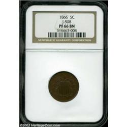 1866 5C Shield Five Cents, Judd-508, Pollock-592, R.6, PR66 Brown NGC.