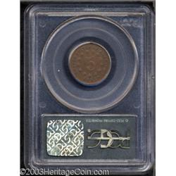 <table><tr><td><TABLE cellSpacing=0 cellPadding=0 width="100%" bgColor=#000000 border=0><TBODY> <TR><TD width="100%"><TABLE cellSpacing=1 cellPadding=3 width="100%" border=0><TBODY><TR><TD width="100%" bgColor=#79735c><FONT face=arial color=#ffffff size=3><B>Description</B> </FONT></TD></TR><TR><TD width="100%" bgColor=#ffffff><FONT face=arial size=2><B>1866 5C Shield Five Cents, Judd-509, Pollock-592, R.6, PR53 PCGS.</B></I> The obverse is the same as that used to coin regular issue 1866 five-cent pieces. The reverse design is the same as that used for regular issue Shield nickels after 1866, without rays. Struck from copper and bronze, with a plain edge. The current offering has non-reflective red-brown surfaces, with a number of small to moderate handling marks on the reverse, and a few minor contact marks on the obverse. Dark patina clings to some of the devices, and light wear seems to be present on some of the central highpoints. Population: 1 in 53, 4 finer (10/03). </FONT></TD></TR></TBODY></TABLE></TD></TR></TBODY></TABLE><BR><A name=PricesRealized></A><TABLE cellSpacing=0 cellPadding=0 width="100%" bgColor=#000000 border=0><TBODY><TR><TD width="100%"><TABLE cellSpacing=1 cellPadding=3 width="100%" border=0><TBODY><TR><TD width="100%" bgColor=#79735c><A name=PR><FONT face=arial color=#ffffff size=3><B>Previous Prices from Heritage Auctions</B> </FONT></A></TD></TR><TR><TD bgColor=#f6f6ed>No Prior Data Recorded </TD></TR><TR><TD bgColor=#ffffff><FONT face=arial size=1 ?>PLEASE NOTE: All prices realized reflect the final hammer price PLUS the buyer's premium in auctions that charge a buyer's premium. Each item has a notation at the top of the listing indicating whether that lot included a buyer's premium. Example: A item that sells with a final hammer price of $100 and a 20% buyer's premium will display with a price realized of $120. All information listed is intended to be as accurate as possible, but errors are possible. Please use this guide carefully and inform us of any inaccuracies. </FONT></TD></TR></TBODY></TABLE></TD></TR></TBODY></TABLE><BR><TABLE cellSpacing=0 cellPadding=0 width="100%" bgColor=#000000 border=0><TBODY><TR><TD width="100%"><TABLE cellSpacing=1 cellPadding=3 width="100%" border=0><TBODY><TR><TD width="100%" bgColor=#79735c colSpan=6><FONT face=arial color=#ffffff size=3><B>Price Guide*</B> </FONT></TD></TR><TR bgColor=#f6f6ed><TD align=middle><B>Grade</B> </TD><TD align=middle><B>Coin World<BR>(Trends)</B> </TD><TD align=middle><B>Numismedia<BR>Retail</B> </TD><TD align=middle><B>Numismedia<BR>Wholesale</B> </TD><TD align=middle><B>Coin<BR>Universe</B> </TD><TD align=middle><B>Heritage<BR>Value Index</B> </TD></TR><TR bgColor=#ffffff><TD align=middle>50</TD><TD align=right>---</TD><TD align=right>---</TD><TD align=right>---</TD><TD align=right>---</TD><TD align=right>($1.00)</TD></TR><TR style="FONT-WEIGHT: bold" bgColor=#cccfdd><TD align=middle>53</TD><TD align=right>---</TD><TD align=right>---</TD><TD align=right>---</TD><TD align=right>---</TD><TD align=right>($1.00)</TD></TR><TR bgColor=#ffffff><TD align=middle>55</TD><TD align=right>---</TD><TD align=right>---</TD><TD align=right>---</TD><TD align=right>---</TD><TD align=right>($1.00)</TD></TR><TR bgColor=#ffffff><TD colSpan=6><FONT size=1>*All information listed is intended to be as accurate as possible, but errors are possible. No item may be returned or refused based on this information which is provided as a service to our customers. You should contact each pricing source directly to determine the accuracy of this information. </FONT></TD></TR></TBODY></TABLE></TD></TR></TBODY></TABLE><BR><TABLE cellSpacing=0 cellPadding=0 width="100%" bgColor=#000000 border=0><TBODY><TR><TD width="100%"><TABLE cellSpacing=1 cellPadding=3 width="100%" border=0><TBODY><TR><TD width="100%" bgColor=#79735c><FONT face=arial color=#ffffff size=3><B>Population Guide</B> </FONT></TD></TR><TR bgColor=#ffffff><TD align=middle><!-- Begin Output of Population Grid--><TABLE cellSpacing=0 cellPadding=0 width="100%" border=0><TBODY><TR><TD vAlign=center><TABLE cellSpacing=0 width="100%" border=1 cellsadding="3"><TBODY><TR><TD vAlign=center><TABLE cellSpacing=0 cellPadding=3 width="100%" border=1><TBODY><TR><TD vAlign=center align=middle bgColor=#f0f1e8 colSpan=2 <CENTER><FONT face=Arial size=2><B>PCGS Pop </B></FONT><CENTER></CENTER></TD><TD vAlign=center align=middle bgColor=#f0f1e8 colSpan=2><CENTER><FONT face=Arial size=2><B>NGC Pop</B></CENTER></FONT></TD></TR><TR><TD vAlign=center><FONT face=Arial size=2>(53)</FONT> </TD><TD vAlign=center align=right><FONT face=Arial size=2>1</FONT> </TD><TD vAlign=center><FONT face=Arial size=2>(53)</FONT> </TD><TD vAlign=center align=right><FONT face=Arial size=2>0</FONT> </TD></TR><TR><TD vAlign=center><FONT face=Arial size=2>(>53)</FONT> </TD><TD vAlign=center align=right><FONT face=Arial size=2>4</FONT> </TD><TD vAlign=center><FONT face=Arial size=2>(>53)</FONT> </TD><TD vAlign=center align=right><FONT face=Arial size=2>0</FONT> </TD></TR></TBODY></TABLE></TD></TR></TBODY></TABLE></TD></TR></TBODY></TABLE><!-- End Output of Population Grid--></TD></TR></TBODY></TABLE></TD></TR></TBODY></TABLE><BR><TABLE cellSpacing=0 cellPadding=0 width="100%" bgColor=#000000 border=0><TBODY><TR> Important notice: Heritage usually auctions material at the rate of 200-250 lots per hour. On some occasions eBay Live bid software or the Internet may not be able to keep up with the pace of the auction. We recommend placing a realistic absentee bid now as insurance to avoid disappointment. Occasionally the auctioneer may eliminate or reject an eBay Live bid, and the auctioneer may also reopen a lot after the close of the eBay live bidding (usually because we missed an audience bid), and may reject your bid even if it shows you as the winning bidder. By bidding via eBay Live, you agree that Heritage may award the lot to another bidder at its sole discretion under the circumstances described above or any oth