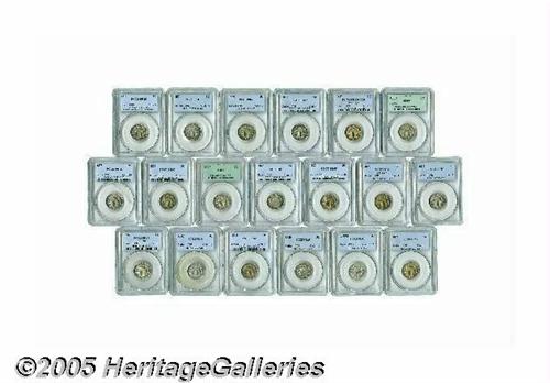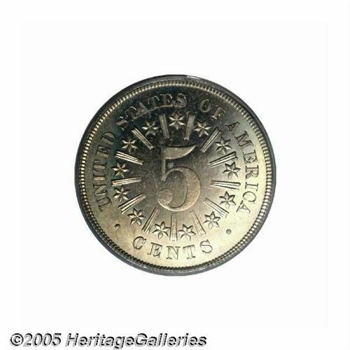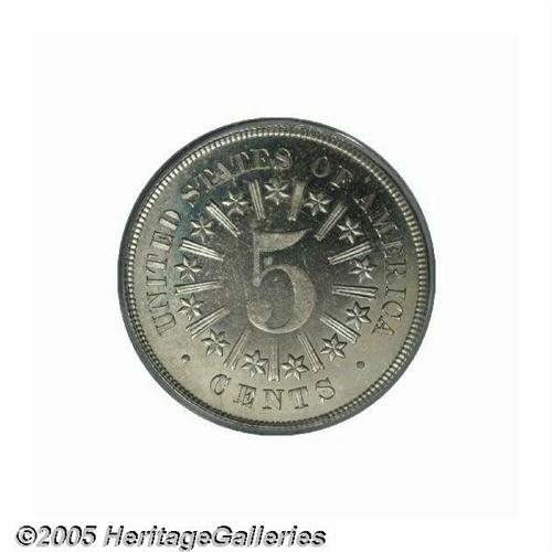 <B>1866<5C> through 1883 Shield Nickel Proof Set. All are PCGS graded PR65 or higher as noted. 1866 Rays PR66 PCGS; 1867 No Rays PR65 Cameo PCGS; 1868 PR65 PCGS; 1869 PR65 PCGS; 1870 PR65 PCGS; 1871 PR65 PCGS; 1872 PR66 PCGS; 1873 Closed 3 PR66 PCGS; 1874 PR65 PCGS; 1875 PR65 PCGS; 1876 PR66 PCGS; 1877 PR65 PCGS; 1878 PR66 PCGS; 1879 PR65 PCGS; 1879/8 PR66 PCGS; 1880 PR65 PCGS; 1881 PR66 PCGS; 1882 PR66 PCGS and 1883 PR66 PCGS.</B></I> There is no 1867 With Rays in Proof included with this collection. An outstanding Gem collection, most of the coins are bright and reflective, and show minimal or no toning aside from the typical light bluish tint or light gold starting to form. None have significant specks (most don't have any specks) and all are very attractive for their respective grades. A carefully put together set which shows appreciable effort on the part of the consignor and undoubtedly represents a considerable amount of time and resources expended to assemble such a memorable collection. A total of 19 coins are included in this lot.