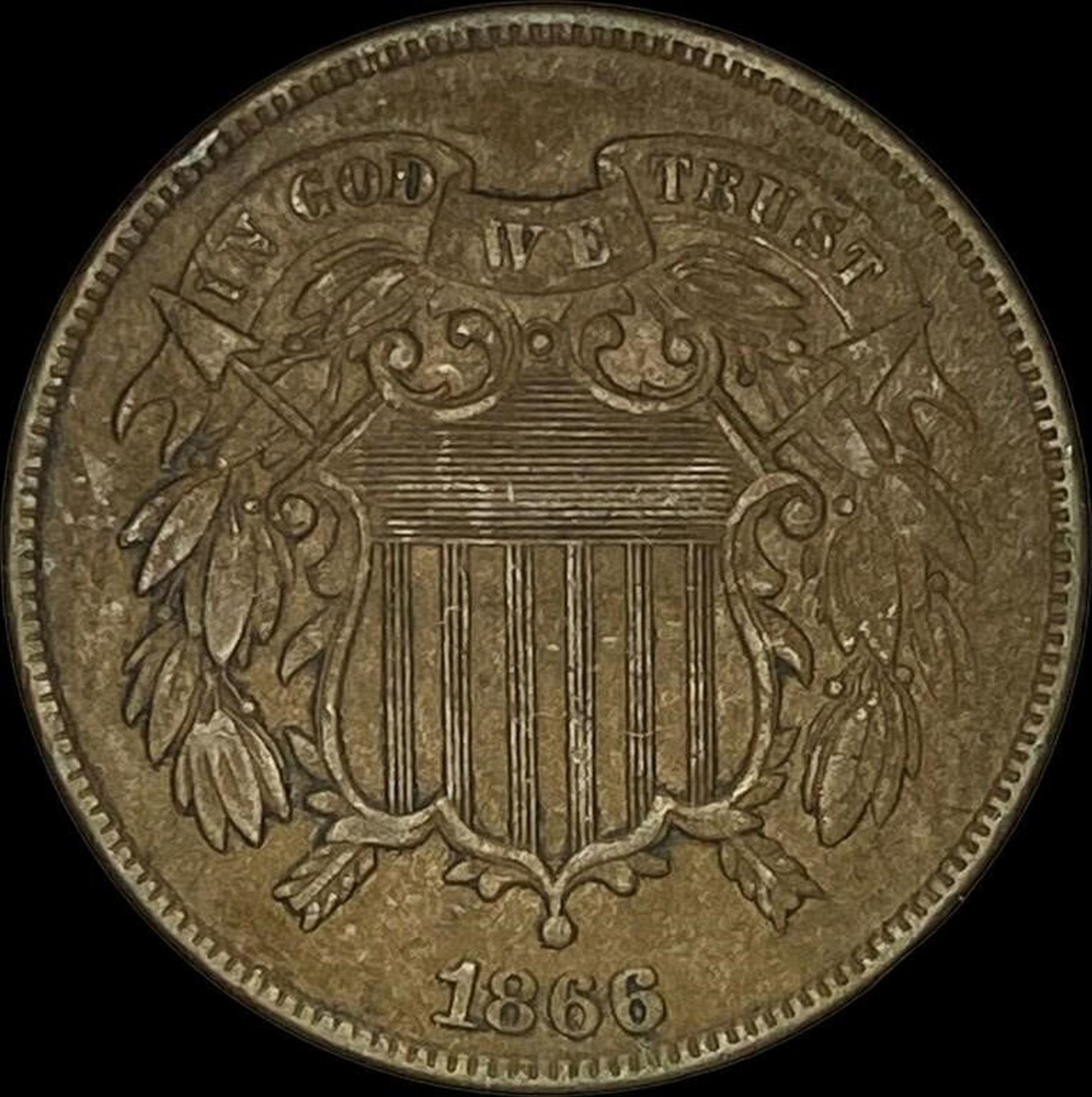 1866 Bronze Two-Cent Piece NEARLY UNCIRCULATED